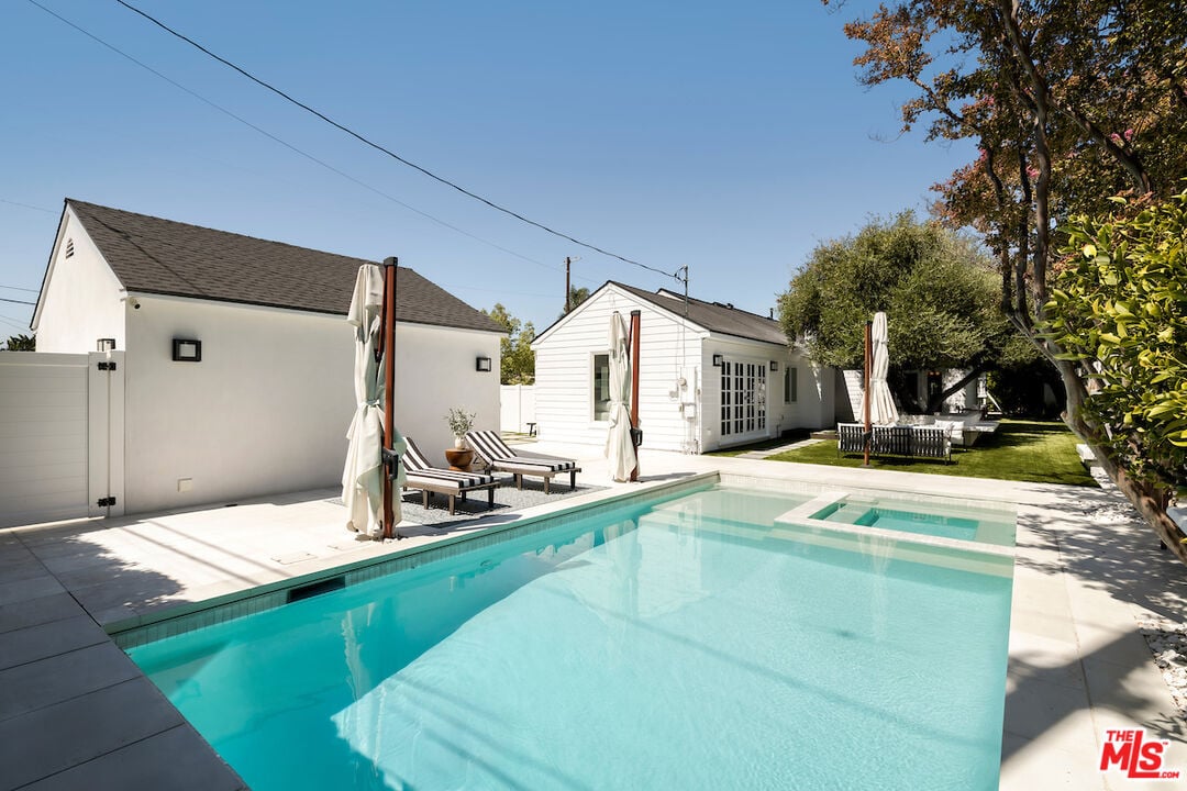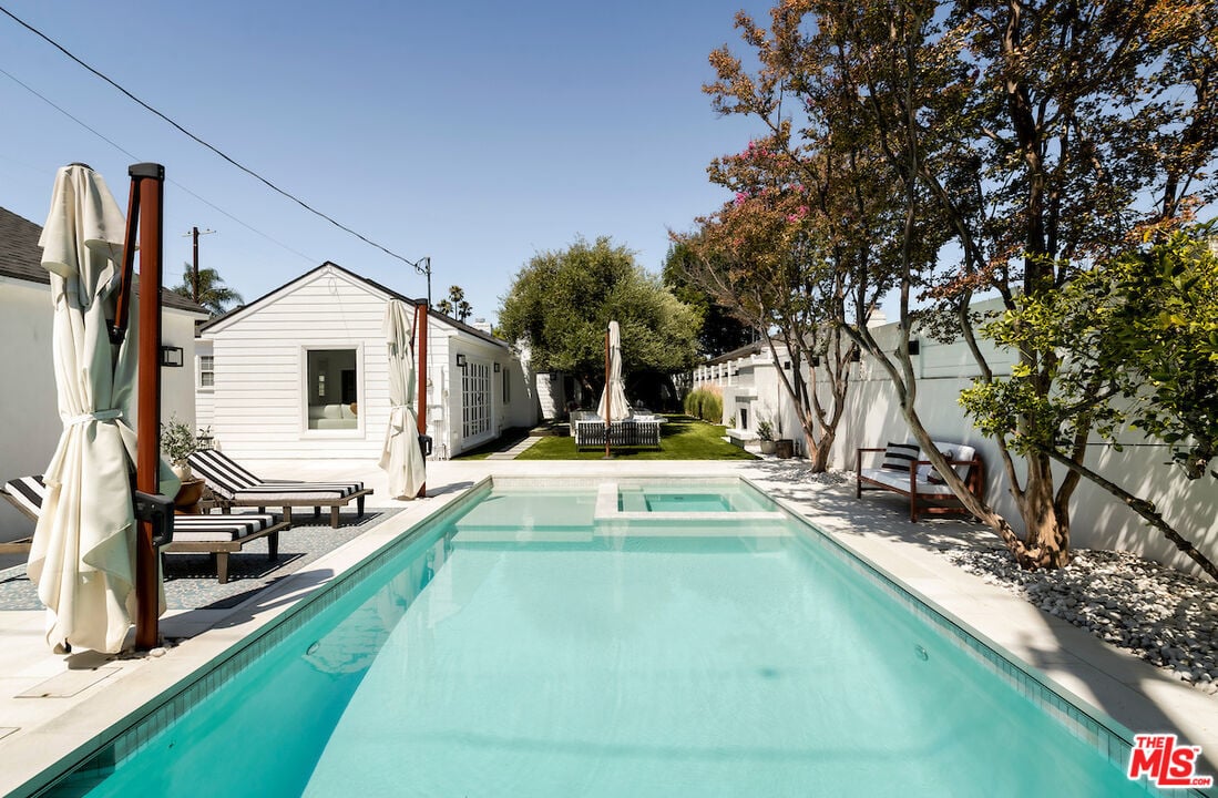 Over the past few years, the home has been meticulously renovated, including three new bathrooms, a beautifully updated kitchen, wide-plank hardwood floors, new pool and spa, new turf, and newer roof, HVAC, water heater, copper plumbing and is set up with cameras and security system.